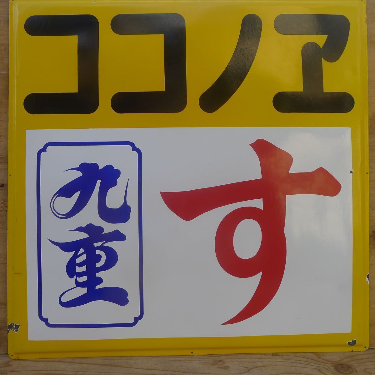 - 【現状品】ココノエ酢 九重す 大型ホーロー看板 サイズ:約 縦横90.5×奥行2㎝ 昭和レトロ 広告 ノベルティグッズ ココノヱ食品/200