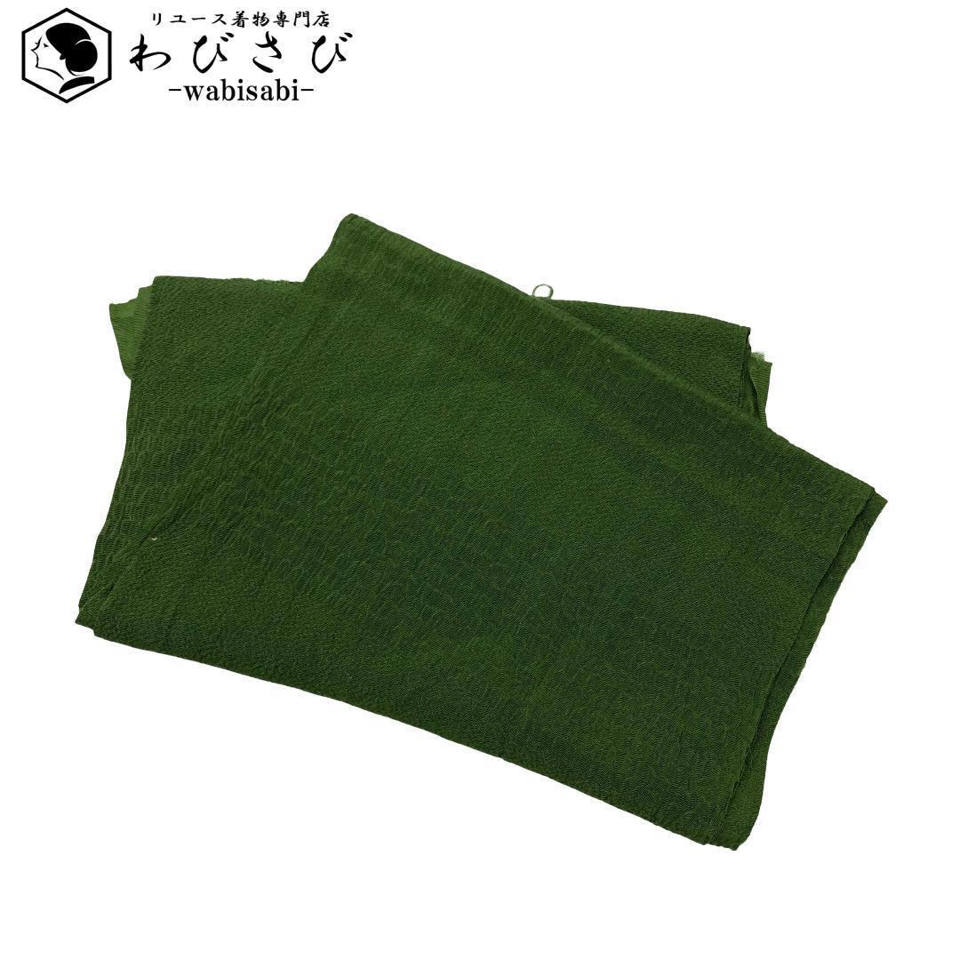 - 和装小物 帯揚げ 正絹 縮緬 無地 葉緑色 C-5906 着物 きもの kimono 和服 和装 中古 リサイクル着物 【送料無料】