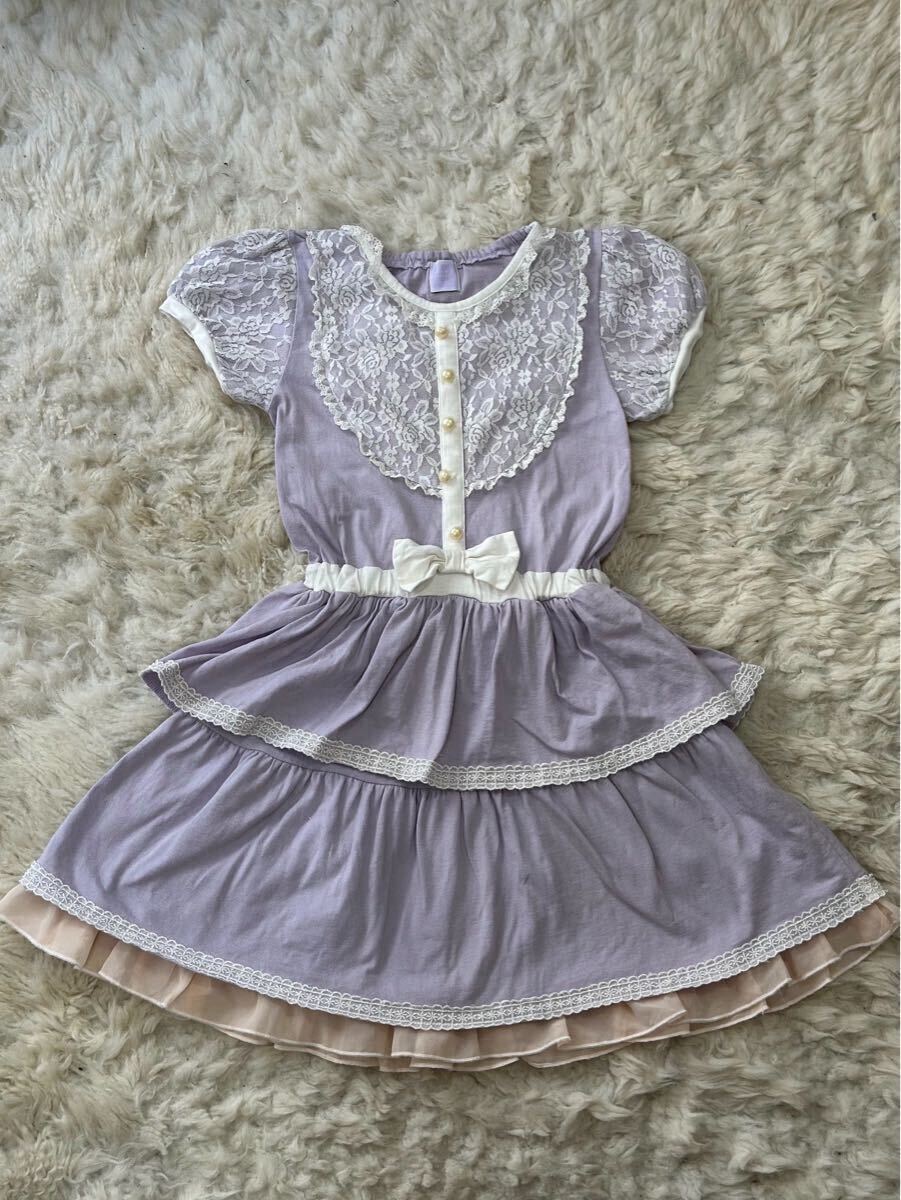 - axes femme kids/ワンピース/半袖ワンピース/レースワンピース/花柄/女の子/キッズ/kids/フリル/パープル/紫/140cm/発表会/姉妹ペアルック