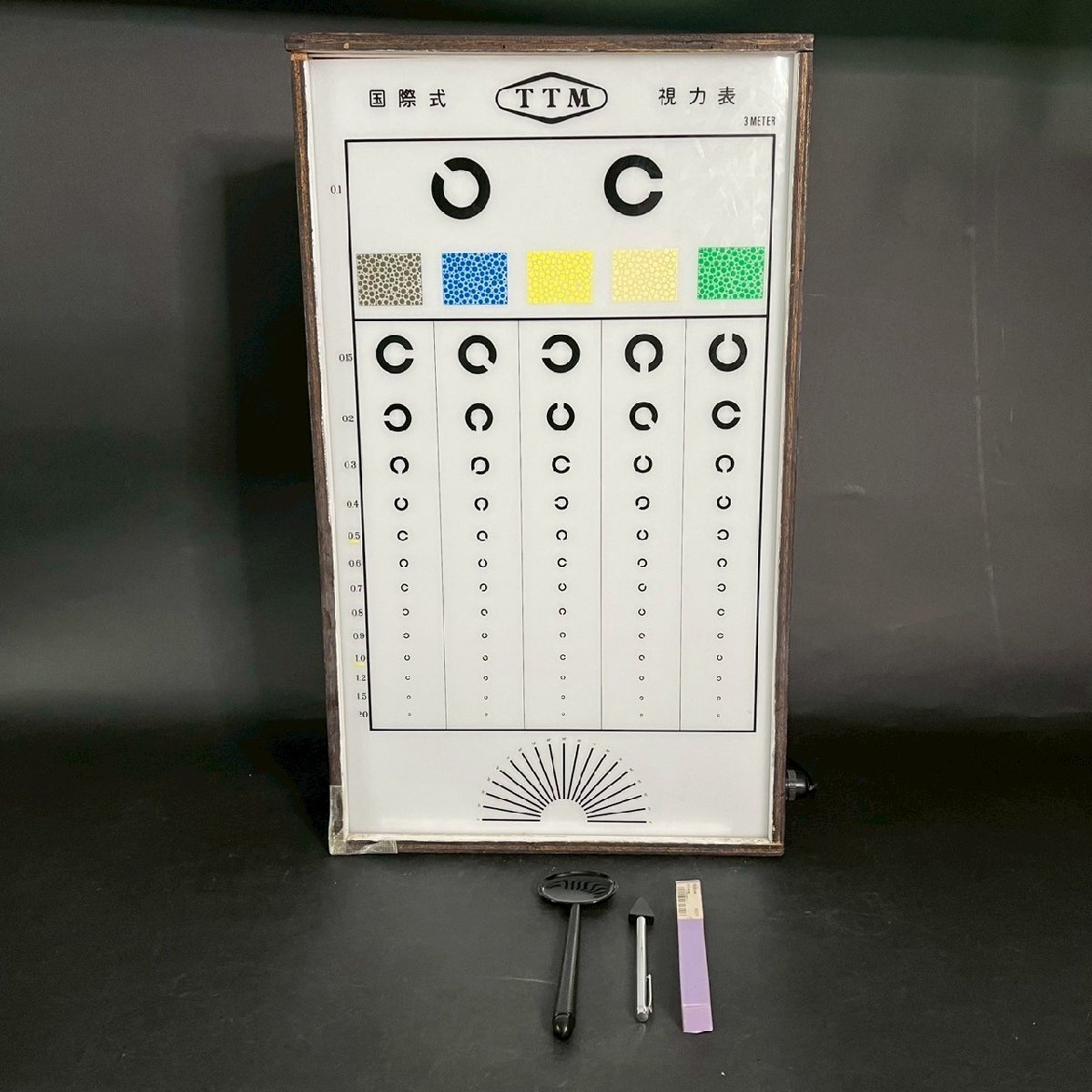 - SW0506-2-3 視力表 国際式 TTM 3METER 視力 検査 視力検査器 レトロ 昭和 眼 目 置物 高さ64.5㎝ 横幅38.5㎝ 奥行14㎝ 160サイズ
