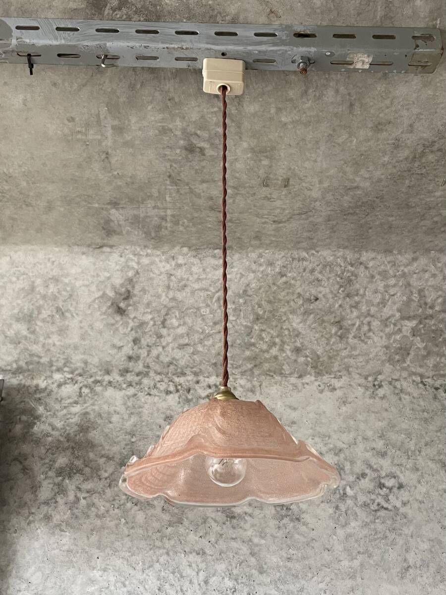 - 53-2. 40’s フランスアンティーク 古民家 ガラスシェードペンダントランプ フリル 吊り下げ シーリングライト 店舗 美容室