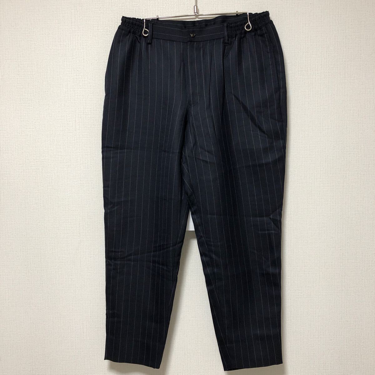 > (k) AD2020 HOMME DEUX COMMEdesGARCONS コムデギャルソン ウエストゴム ストライプ イージー スラックス L テーパード パンツ ウール 紺