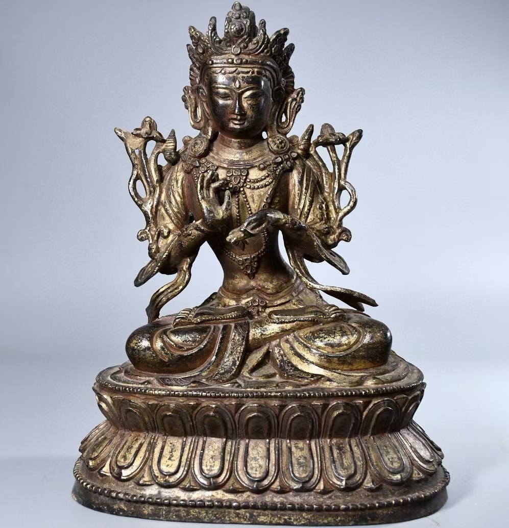 > 仏像 清代 旧蔵 チベット伝承古銅老チベット度母仏像 銅製 銅琉金 仏教 唐物 收蔵品 時代物 古美術 細密造 古置物 希少珍品 供養品 5.23