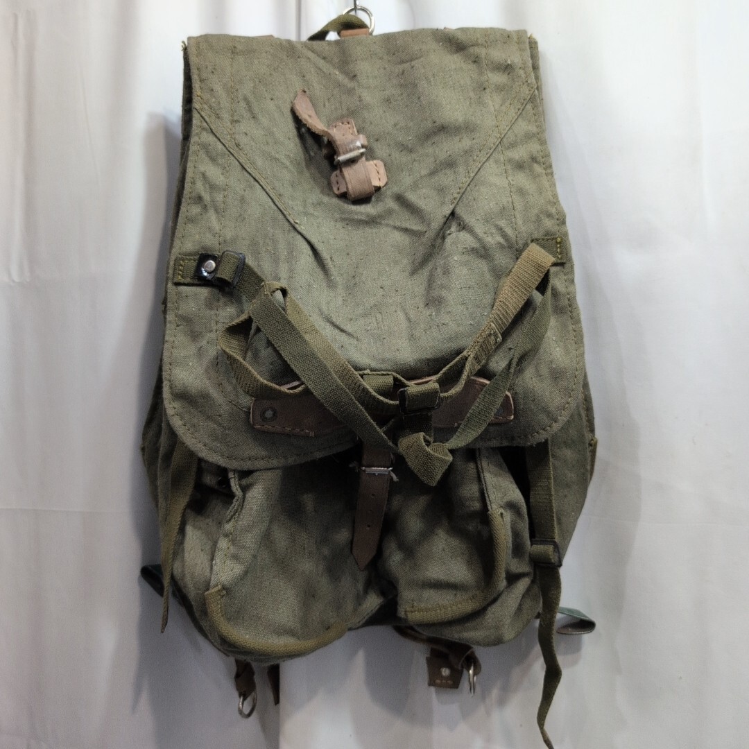 > 70s 実物 ルーマニア軍 キャンバス リュック バックパック ミリタリー レザー 鞄 かばん オリーブ カーキ ユーロ ヨーロッパ V