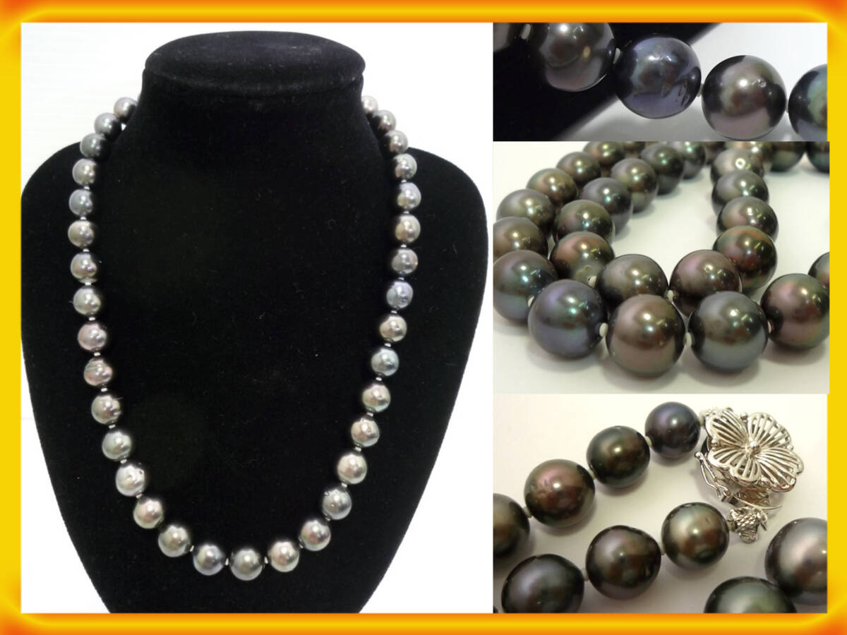 > 黒蝶真珠 K14WG 南洋 黒真珠 ネックレス ブラックパール 直径約8-12mm 74g 長さ47cm ケース 綺麗 高級感 入学式 卒業式 冠婚葬祭 必見