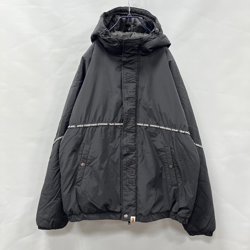 - A BATHING APE/ア ベイシング エイプ/RELAXED HOODIE JACKET/リラックスフーディジャケット/中綿/フロント刺繍/XLサイズ/ブラック