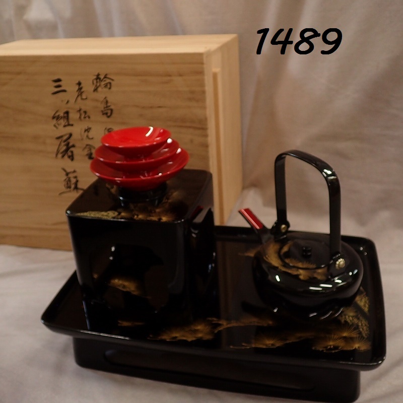 - ■FK-1489 輪島塗 老松 沈金 三ツ組 屠蘇器・天然木・杉山暁子 デザイン 定価30万 20250522