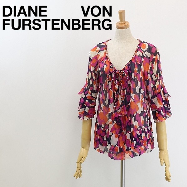 - ◆DIANE VON FURSTENBERG ダイアンフォン ファステンバーグ GITANE シルク100% 総柄 シフォン ティアード フレアスリーブ ブラウス 2