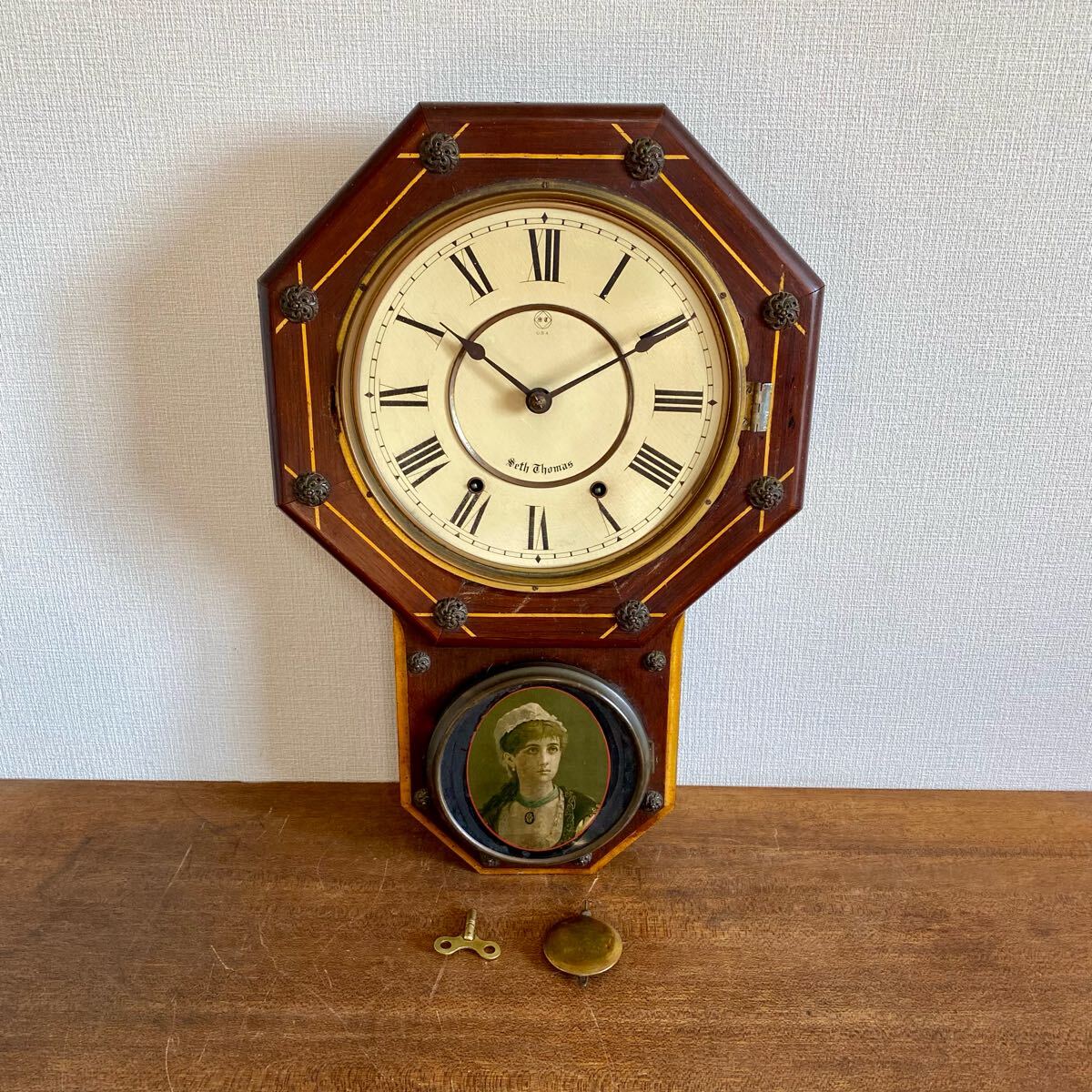 - アンティーク Seth Thomas 八角時計 掛時計 / セストーマス 振り子 ゼンマイ式 USA 柱時計 【稼動品】