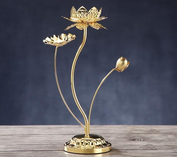 - OHJ618★人気 寺院用仏具 燭台 密教 供養 常花 蓮の花 3本立 アルミ製 仏壇用造花 蝋燭立て飾り物 総高18.5CM
