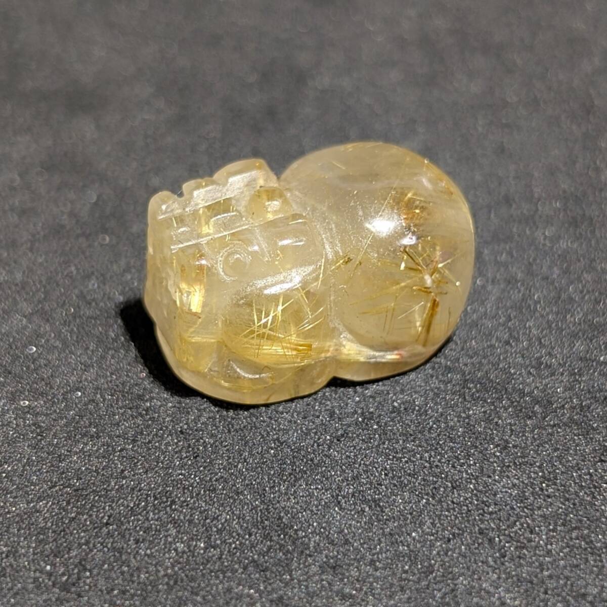 > お尻が特徴的な貔貅彫タイチンルチルクォーツ 風水 置物 金銭を招き寄せるパワー 極太金針水晶 エナジーストーン お守り オブジェ ギフト