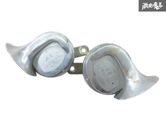 > 【音出しOK!!】 KM ホーン クラクション 警報機 左右 2個セット 510Hz 410Hz シルバー系 汎用 即納 棚4-4-D