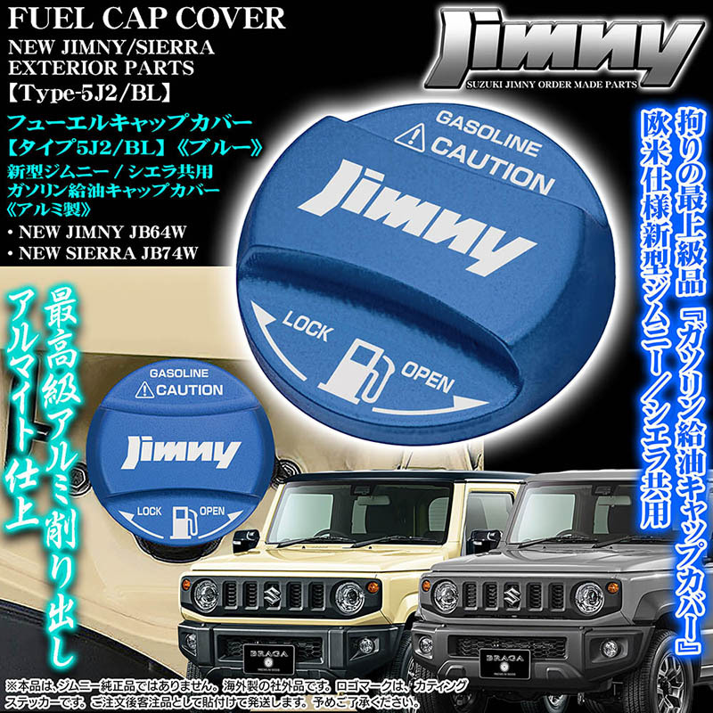- JB64Wジムニー/タイプ5J2/BL/給油 フューエル キャップ カバー/アルミ製アルマイト/ブルー/新型ジムニー ロゴ ステッカー付/客注品/ブラガ