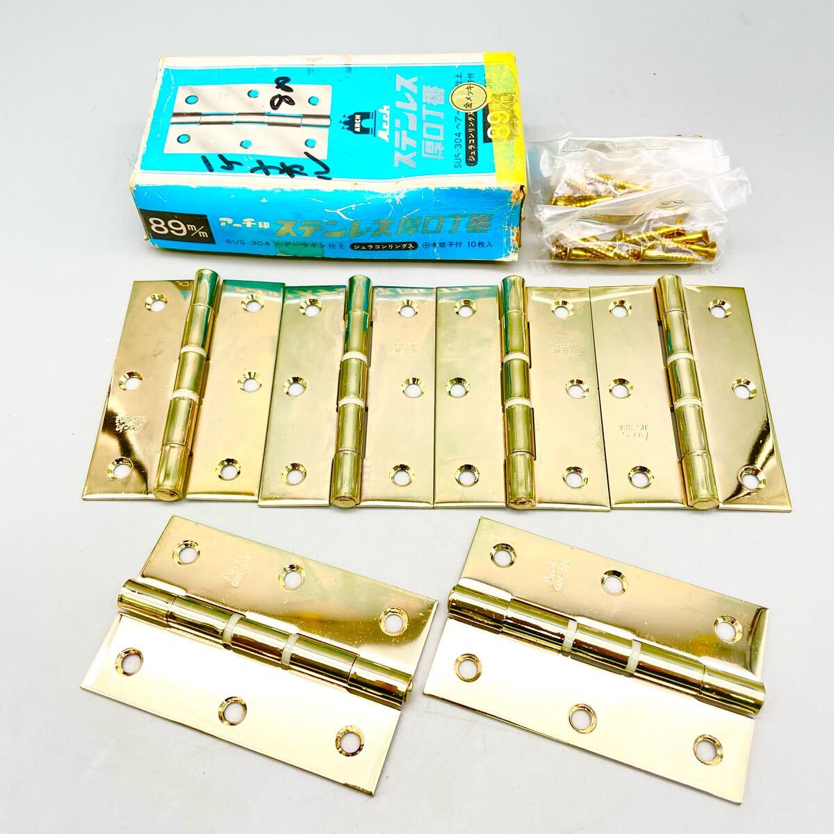 - [新品 未使用] Arch アーチ ステンレス 厚口 丁番 89mm 6枚 ゴールド 蝶番 ジュラコンリング入 建具 ヒンジ ドア 金具 金物屋 在庫 まとめ