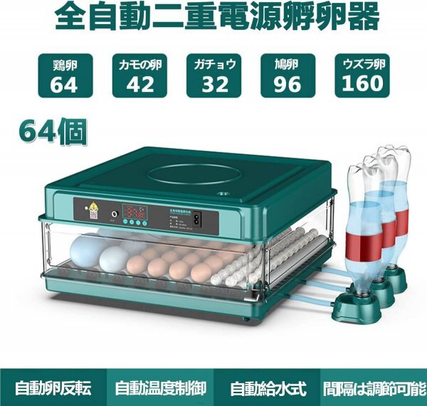 > 自動インキュベーター 自動孵卵器 自動転卵 64枚 大容量 鳥類専用 自動温度制御 自動給水式 簡単操作 重電源 低騒音 業務用 家庭用 孵化用