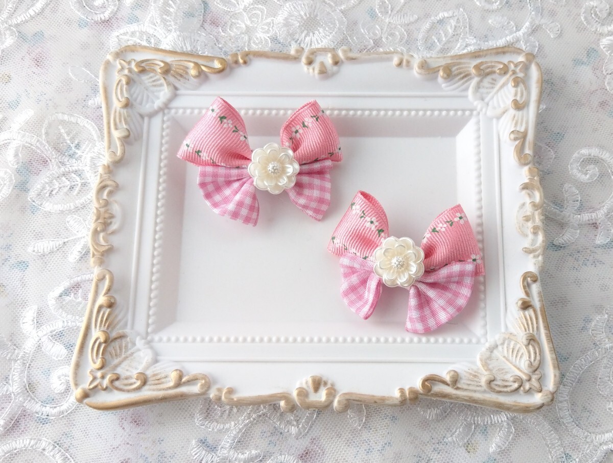 - *幼SD~SD等 1/6~1/3サイズ ドール用 ヘアクリップ ヘアアクセサリー ヘアリボン 2点セット*【Pink Bloom】