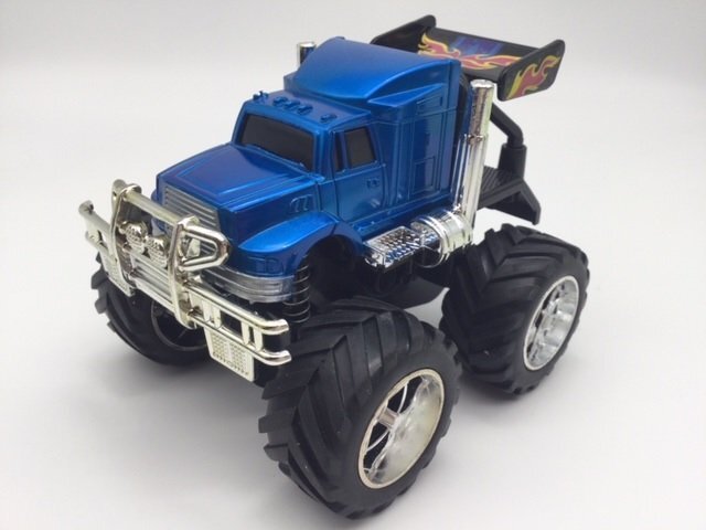 > モンスタートラック ビッグフット 青 アメリカントラックタイプ ミニカー オフロード フリクション フォードタイプ 前後サスペンション可動
