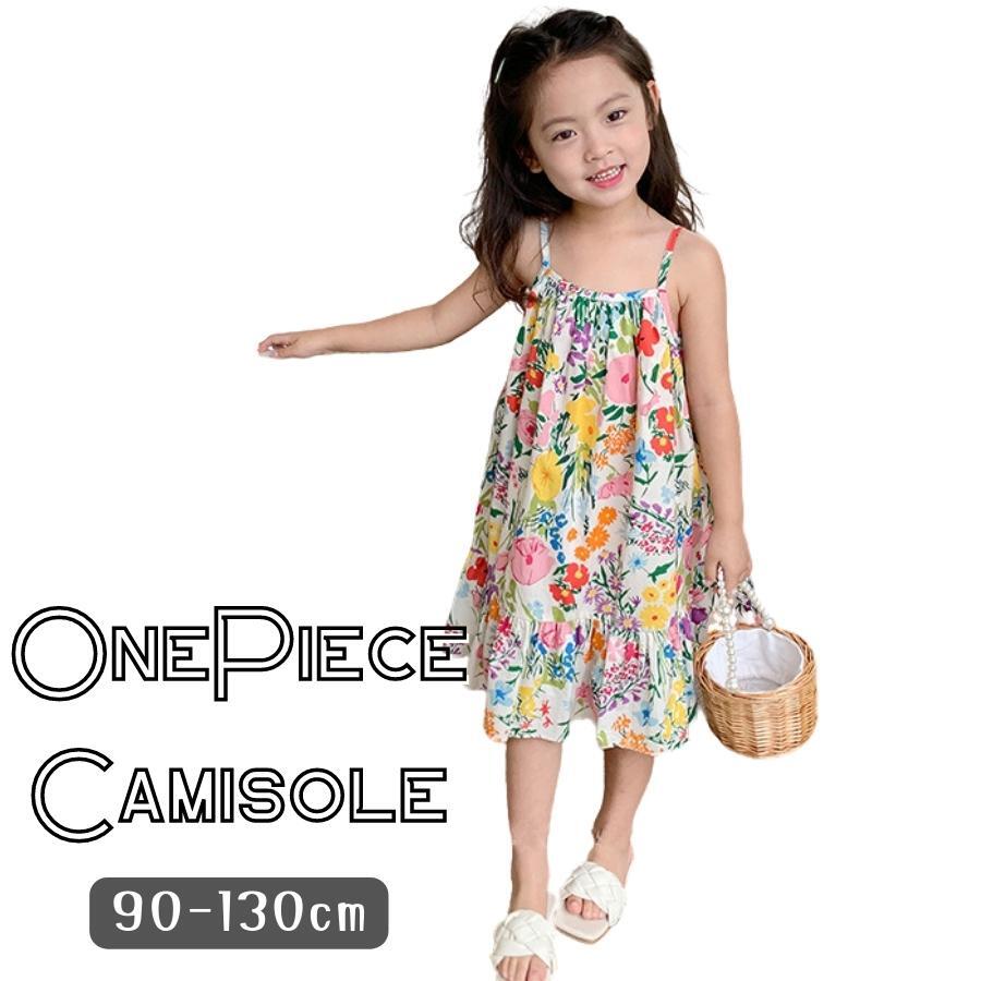 > 花柄 キャミソール ワンピース 袖なし キッズ ジュニア おでかけ 薄手 韓国子供服 女の子 夏 90cm 100cm 110cm 120cm 130cm (7号/90)