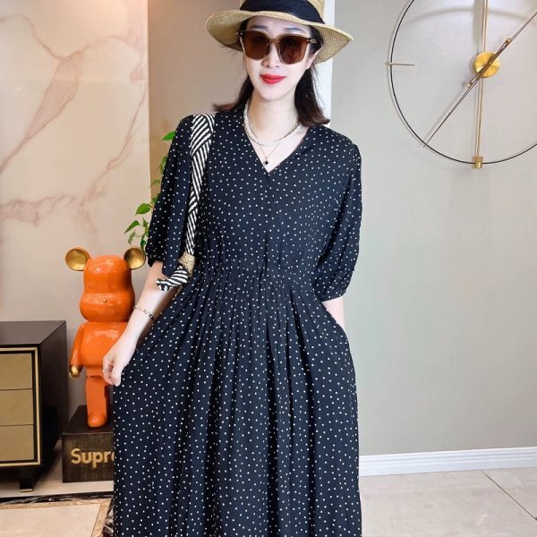 > mc 0705 半袖 ポケット ワンピース ゆったり オシャレ 裾広がる 通気性手触り抜群 肌に優しい ドレープ性 大人可愛 着丈120㎝ 柄71