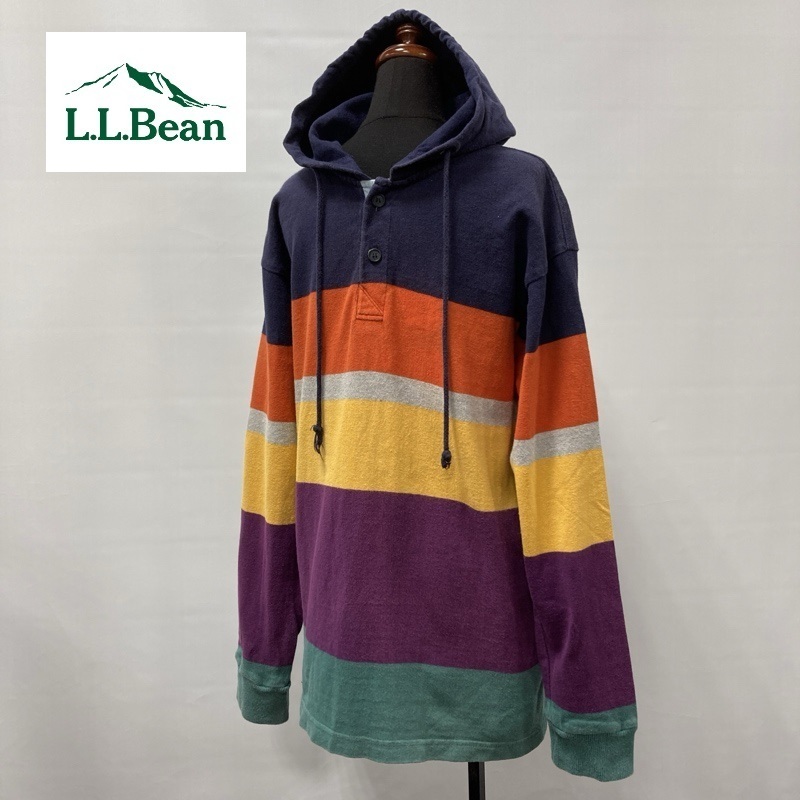> L.L.Bean/エルエルビーン/90s/USA製/マルチボーダー/フーデッドラガーシャツ/ハーフボタン/プルオーバーパーカー/ボーダー/ビンテージ