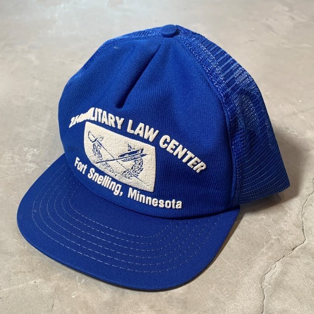- 【Free】USA製 MILITARY LAW CENTER メッシュキャップ 青■ビンテージ オールド アメリカ古着 帽子 80s ミリタリー スナップバック