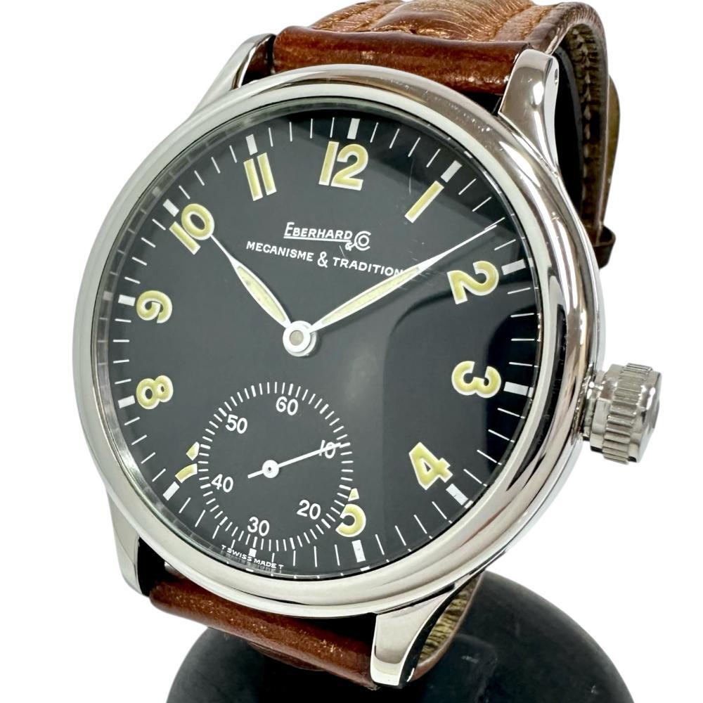 - 21016 エベラール トラベルセトロ 腕時計 ステンレススチール/レザー 手巻き 黒文字盤/茶革ベルト メンズ