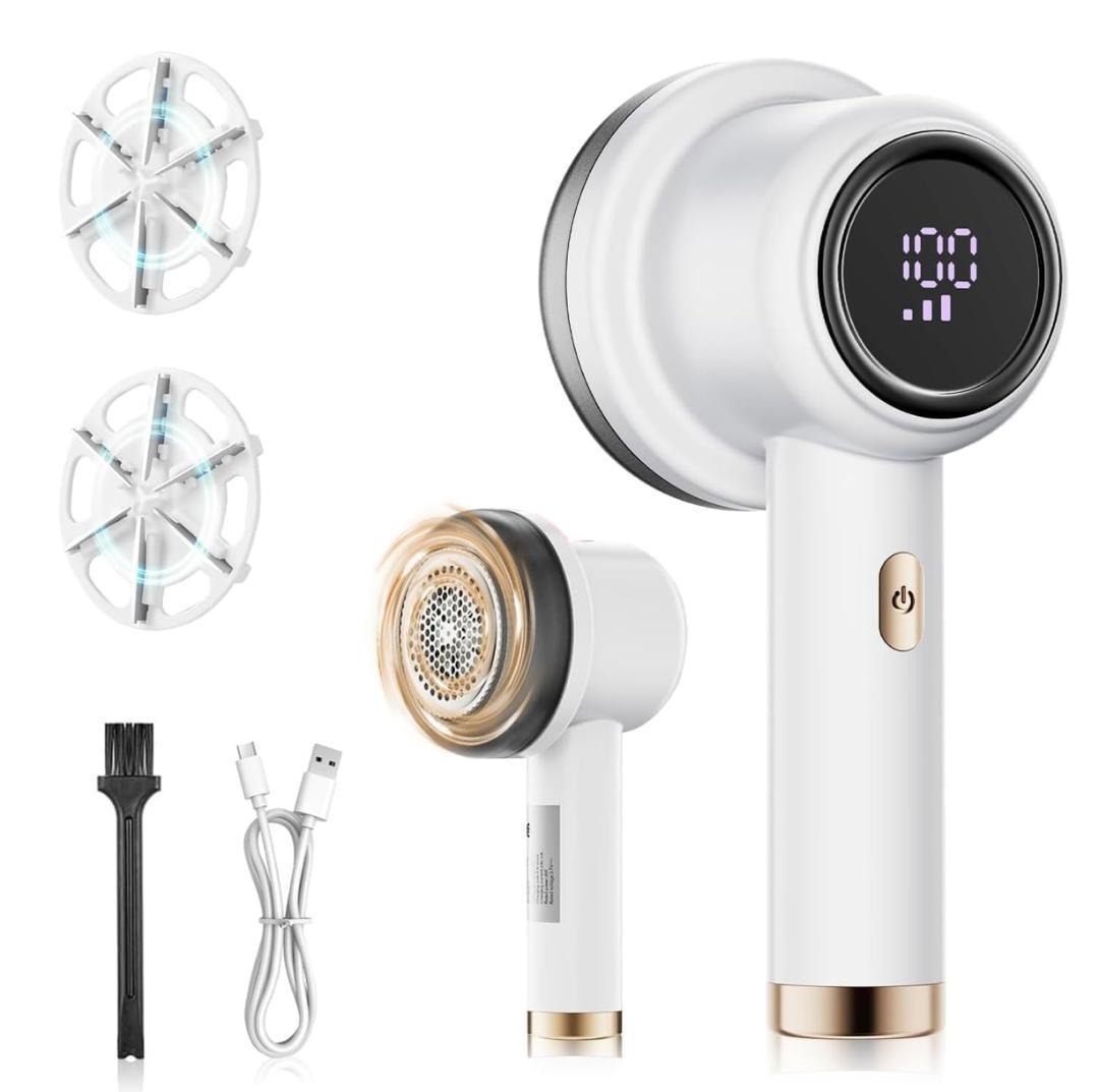- 毛玉取り器 6枚刃 クリーナー 電動 USB充電式 替え刃2枚 新品 液晶ディスプレイ 安全装置 パワフル 3段階スピード調整 代替ブレード×2