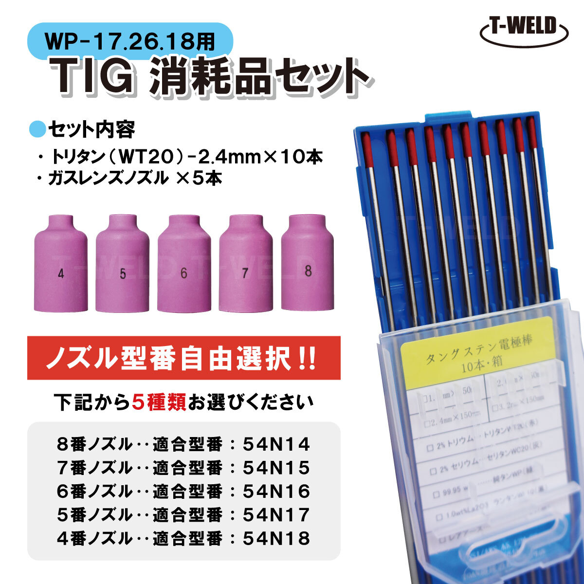 > TIG 消耗品セット WP-17 WP-26 WP-18 ( WT20 2.4mm×10本 ガスレンズノズル×5本)