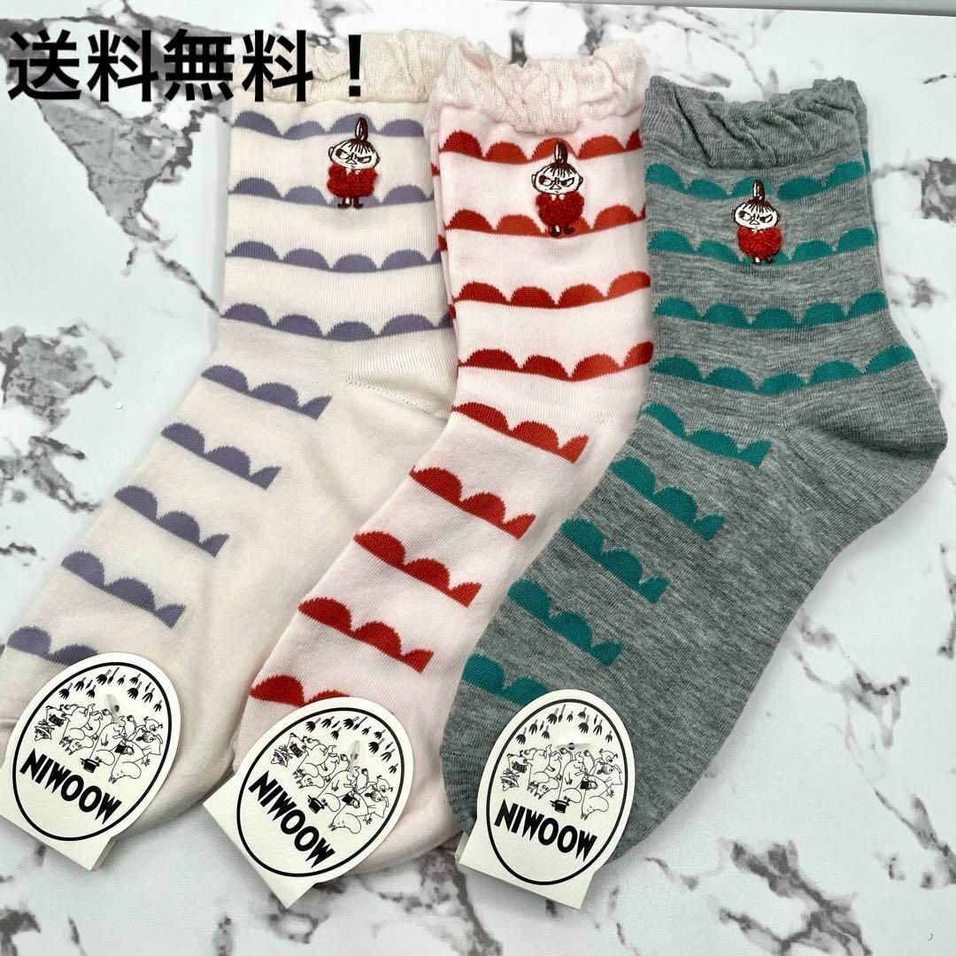 - 靴下 ムーミン ソックス リトルミィ 波ボーダー サガラ刺繍 3足セット 新品