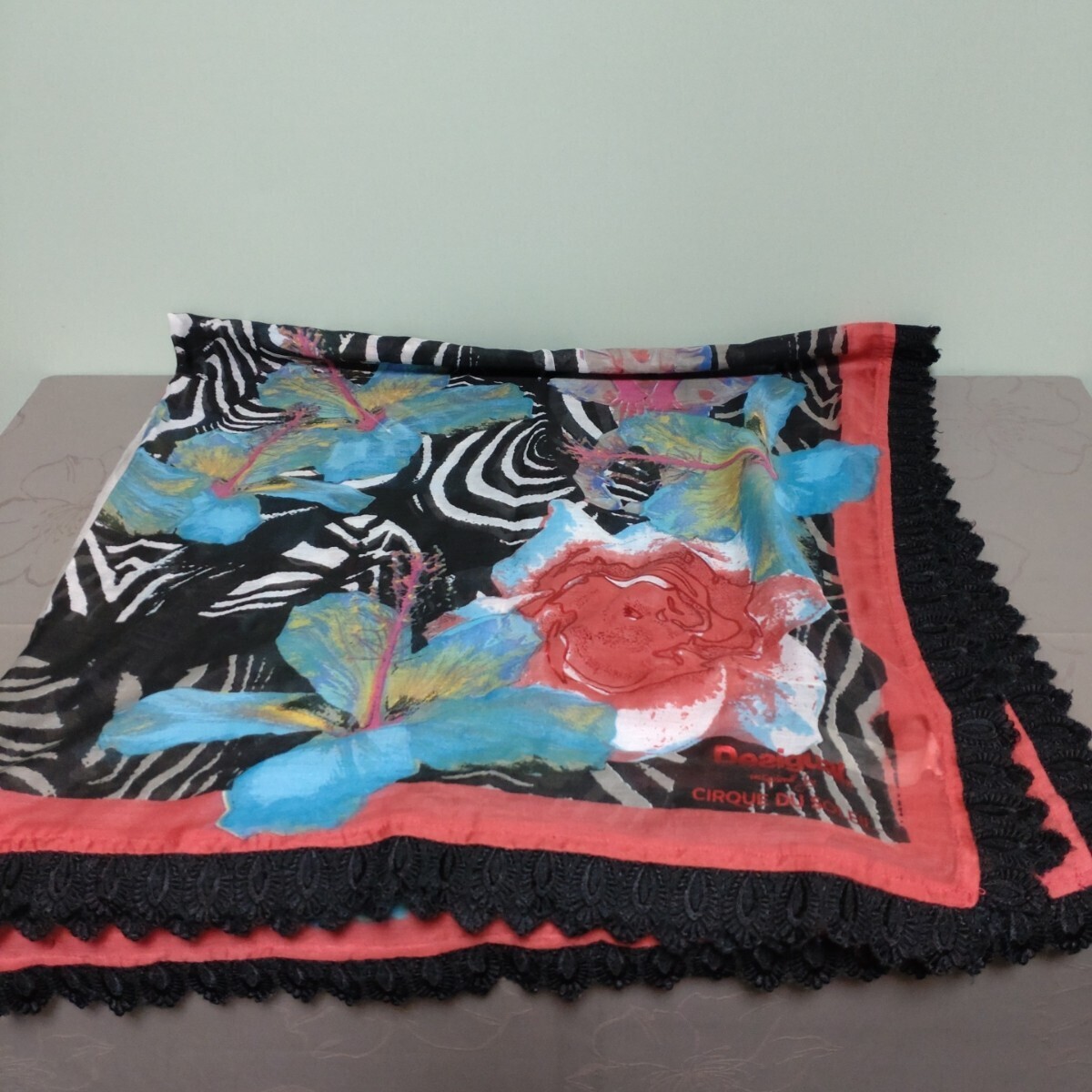 - ★★②デシグアル『Desigual』《縁レース大判スカーフ》114cm角 ☆極美品☆ ★★