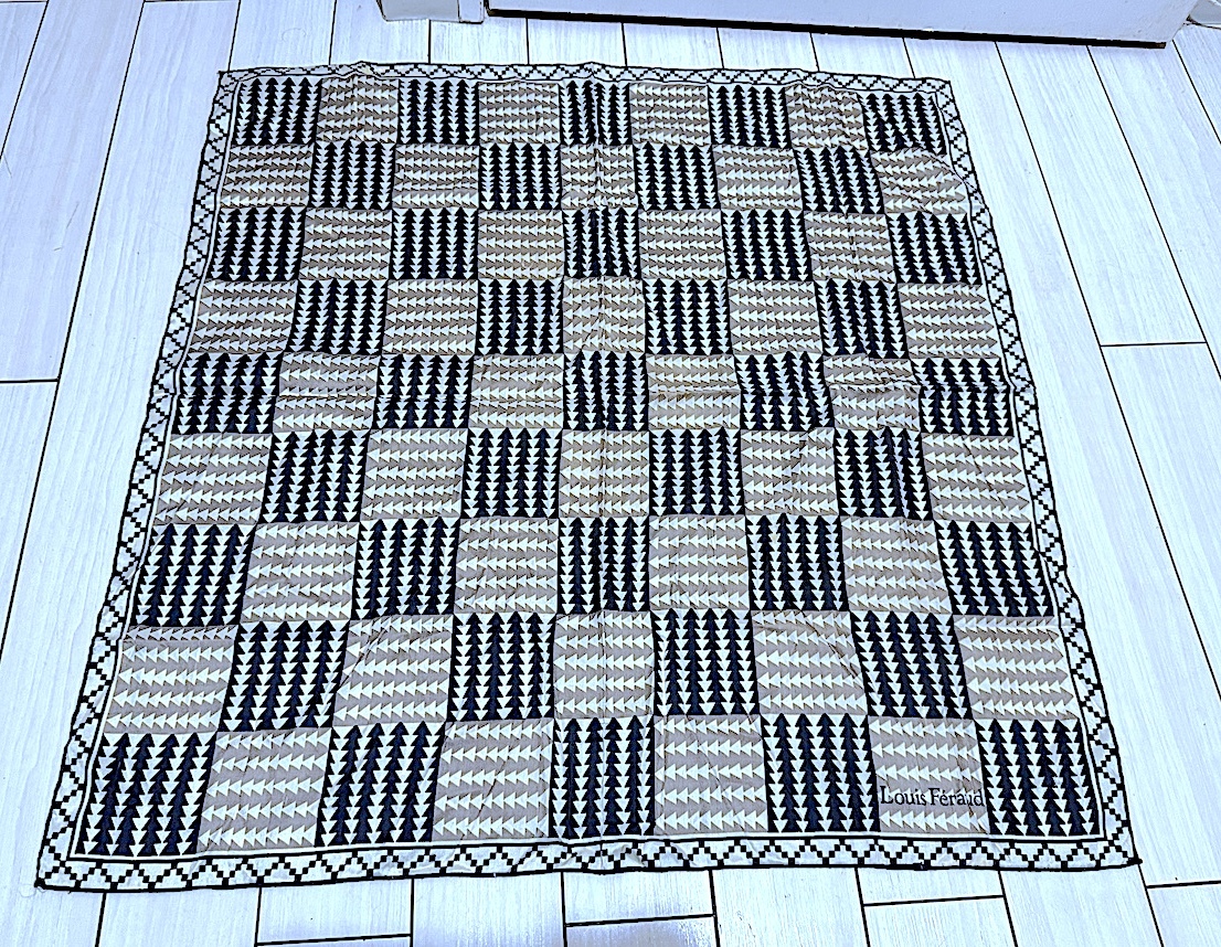 - 【美品】Louis Fraud ルイ・フェロー 大判シルクスカーフ モノトーン 幾何学柄 チェック柄 レレディース フランス製 ヴィンテージ