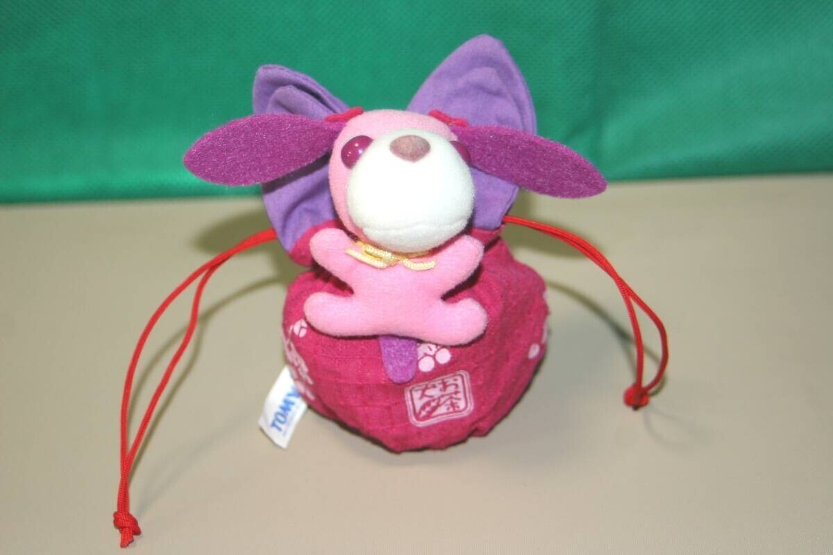 > お茶犬 てのひらきんちゃく ハーブ茶犬 ハナ TOMY 2004年 マスコットぬいぐるみ付き巾着 てのひらにのる和風ミニミニ巾着 トミー