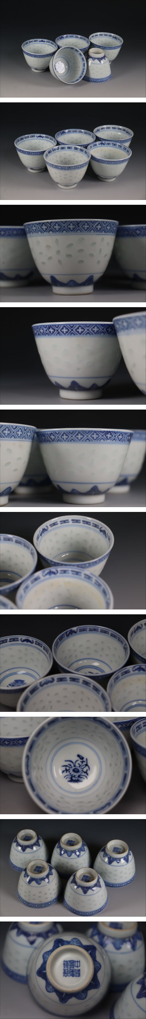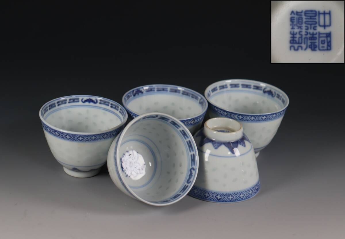- 蔵出し品 中国景徳鎮製 唐物 染付 蛍 煎茶碗 5客 A511