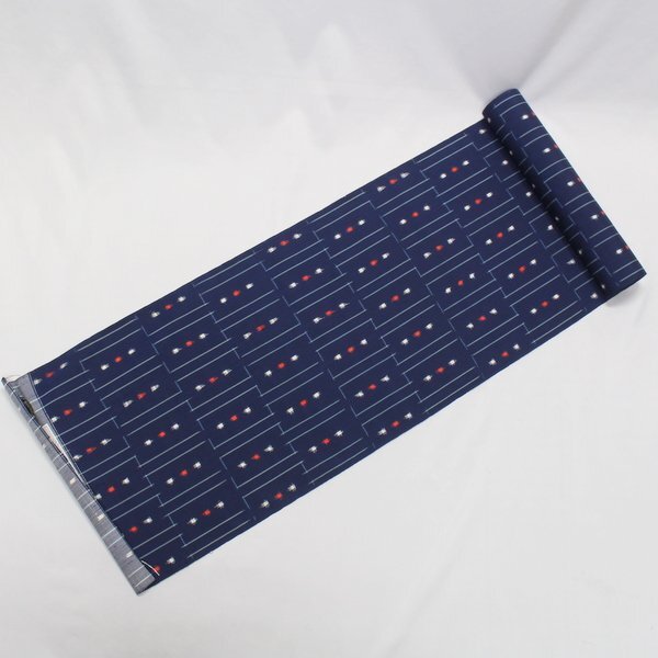 - きもの日和◆1,000円~[日本製]正絹越後十日町絣紬着尺地(反物/未仕立て/紺色系)aak879[P]