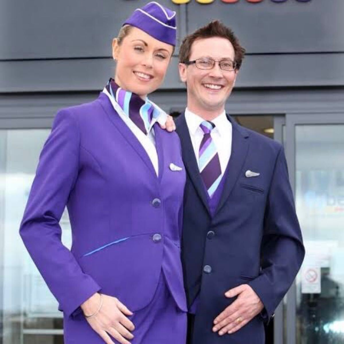 - 【激レア!】Flybe フライビー キャビンアテンダント 制服 ユニフォーム 6点セット パープル 客室乗務員 本物 CA イギリス 航空機 コスプレ
