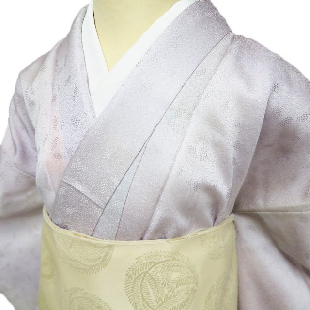 > 小紋 着物 未使用 リサイクル 正絹 袷 紋付き 地模様 暈し 反端付き 薄紫系色 多色 身丈160cm 裄67cm M きもの北條 A1198-5