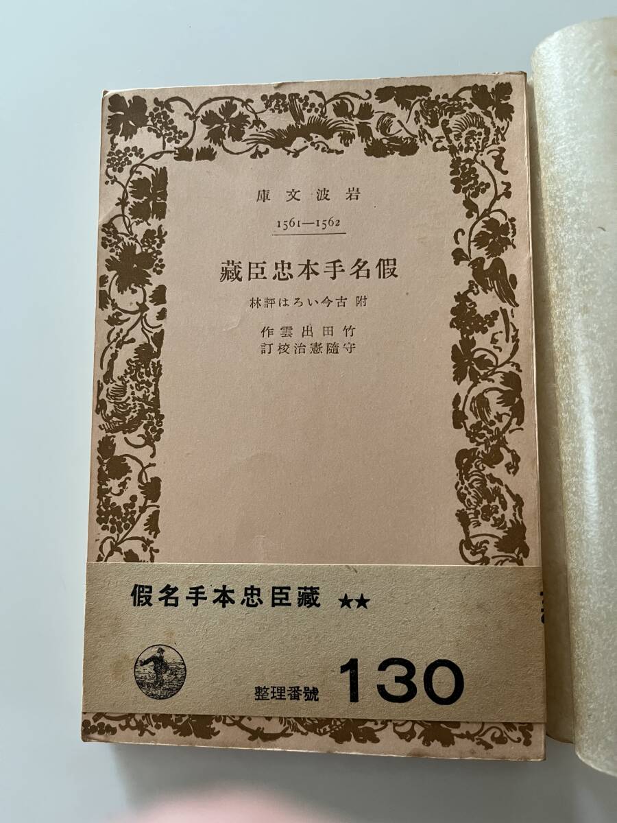 - 竹田出雲『假名手本忠臣藏 附古今いろは評林』(岩波文庫、昭和15年、3刷)、帯・元パラ付。202頁。