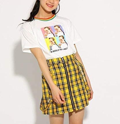 > 新品 PINK-latte ニコラ掲載柄リブ転写プリント Tシャツ オフホワイト 14(XXS140cm) 定価3850円