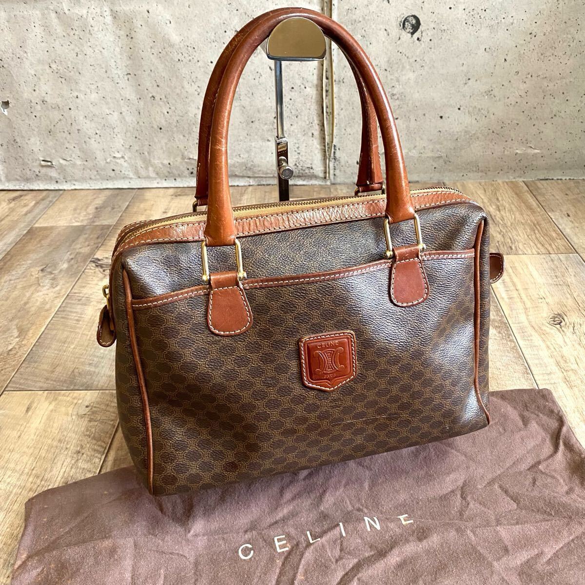 - 本物☆CELINE セリーヌ マカダム ハンドバッグ ミニトートバッグ ブラウン ミニボストン レザー バッグ オールド ヴィンテージ レディース