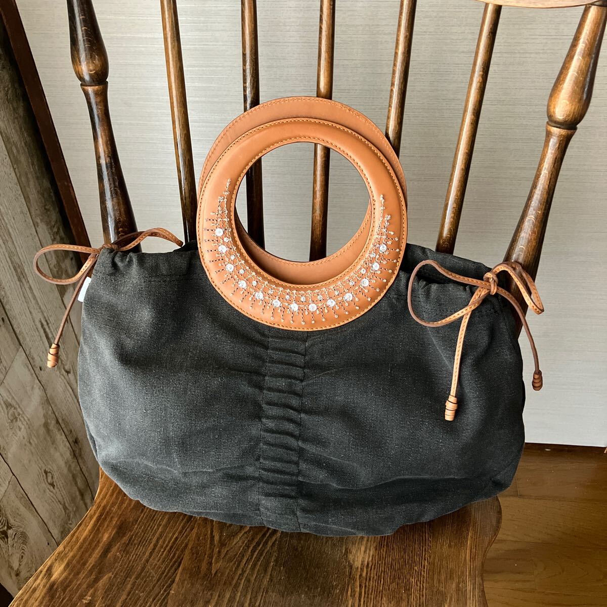 - 【agnes b. アニエスベー】ハンドバッグ トート ブラック系 キャンバス レザー スパンコール ビーズ 匿名発送 兵庫県より