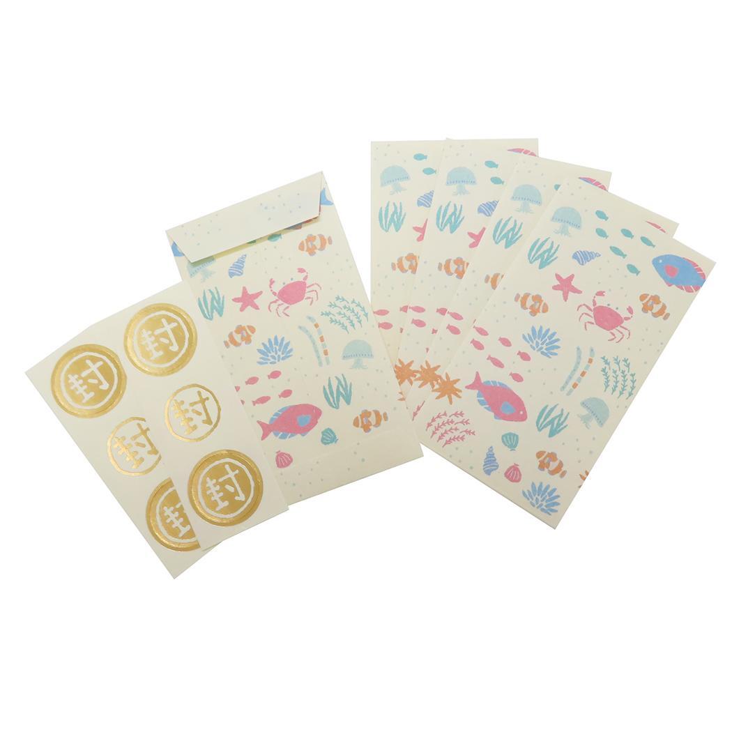 - 伊予和紙ふわり ぽち袋 和紙ポチ袋5枚セット 海の中 フロンティア お年玉袋 ミニ封筒 金封 和風文具 かわいい 封シール付き グ