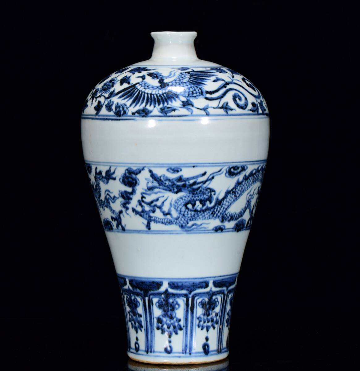 - 【超珍館蔵】元 古陶瓷品 青花 龍鳳紋 梅瓶 陶藝 古賞物 古董品 古美術品 時代物 旧家蔵出 稀少珍蔵品