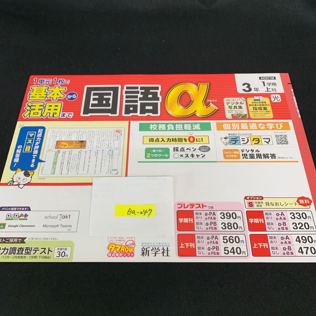 > Ba-247/3年生/1学期/上刊/新学社/小学生 国語 算数 英語 社会 理科 漢字 家庭科 テキスト テスト用紙 教材 文章問題 計算/L7/705028