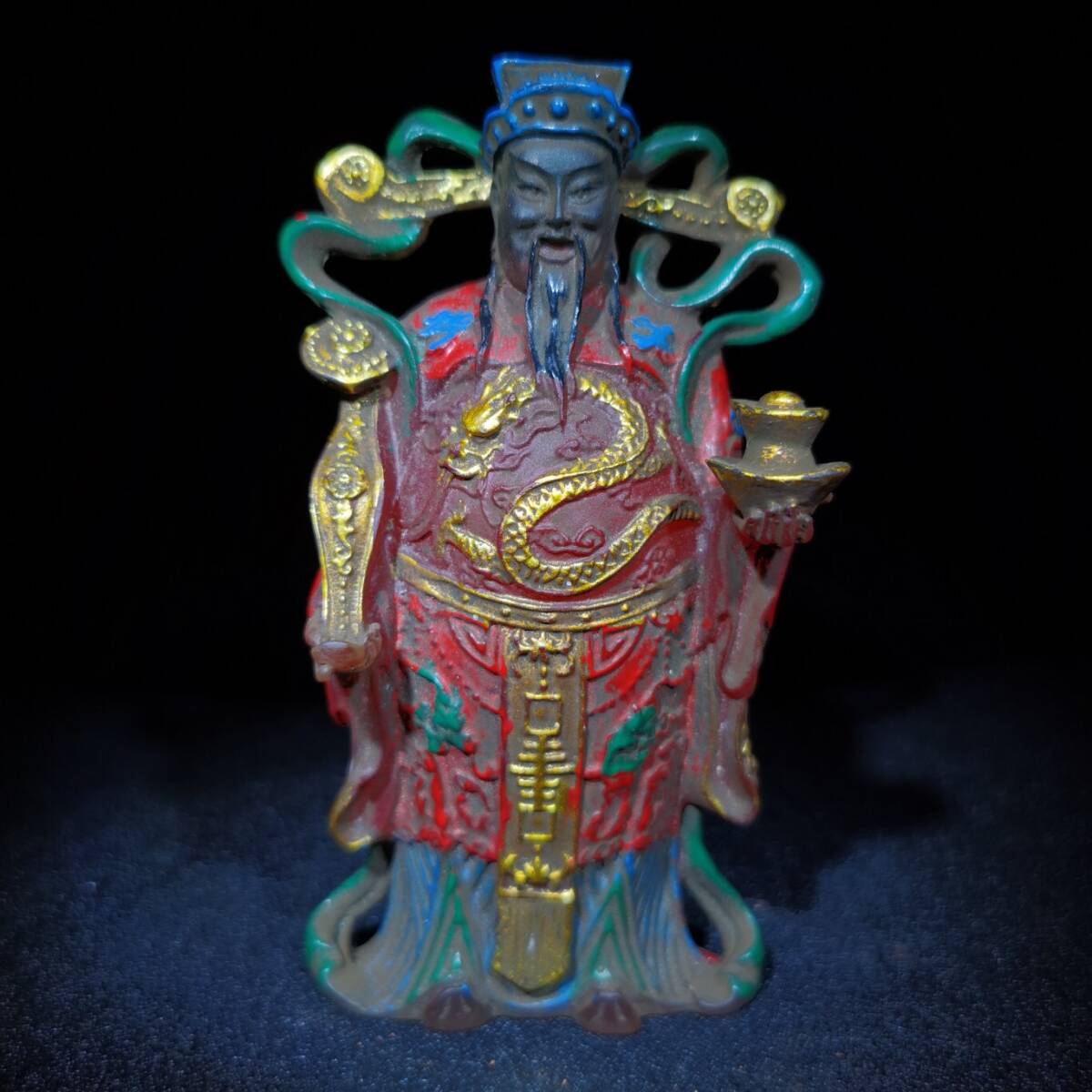 - 蔵友旧蔵出 琉璃製 細密彫 彩繪 財神像 希少珍品 貴重品 置物 古賞物 中国古玩 中国古美術品