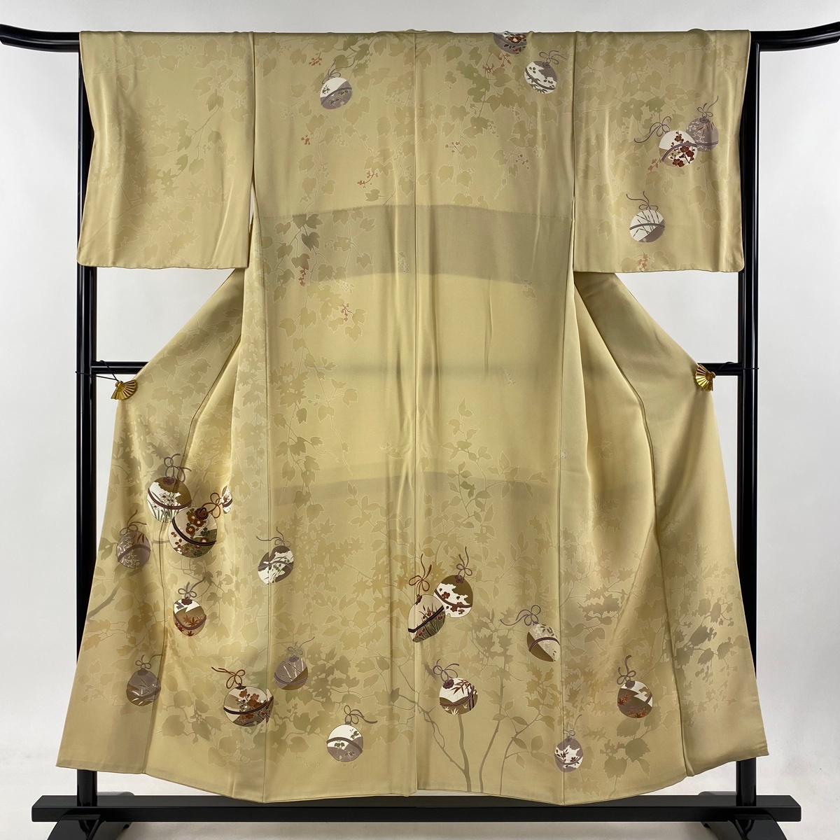 > 【在庫一掃】 訪問着 身丈152.5cm 裄丈65.5cm M 袷 鈴 シルエット 金糸 金彩 ベージュ 正絹 秀品 【中古】