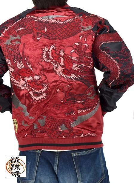 - 粋 月光双龍リバーシブルスカジャン◆絡繰魂 B色 XLサイズ 252136 和柄 和風 竜 刺繍 スーベニアジャケット からくり