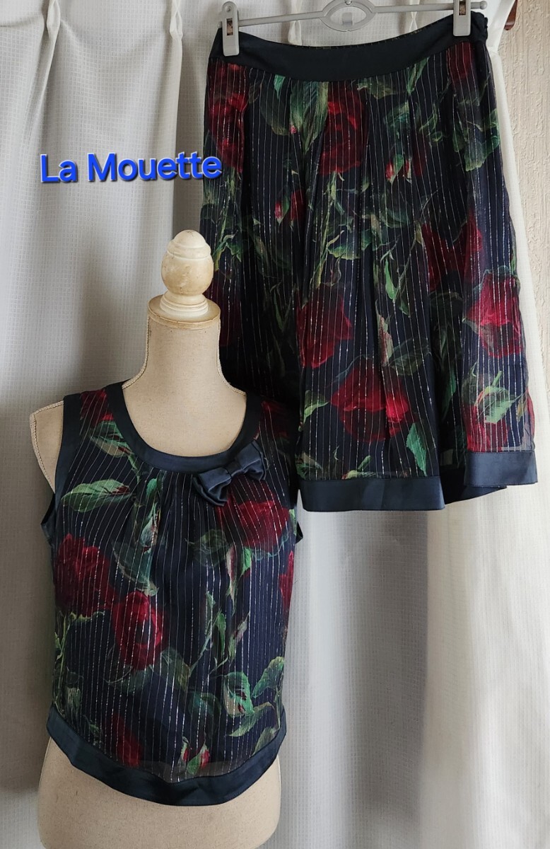 - 大変美品 La Mouette シルクバラ柄セットアップ ブラウス スカート