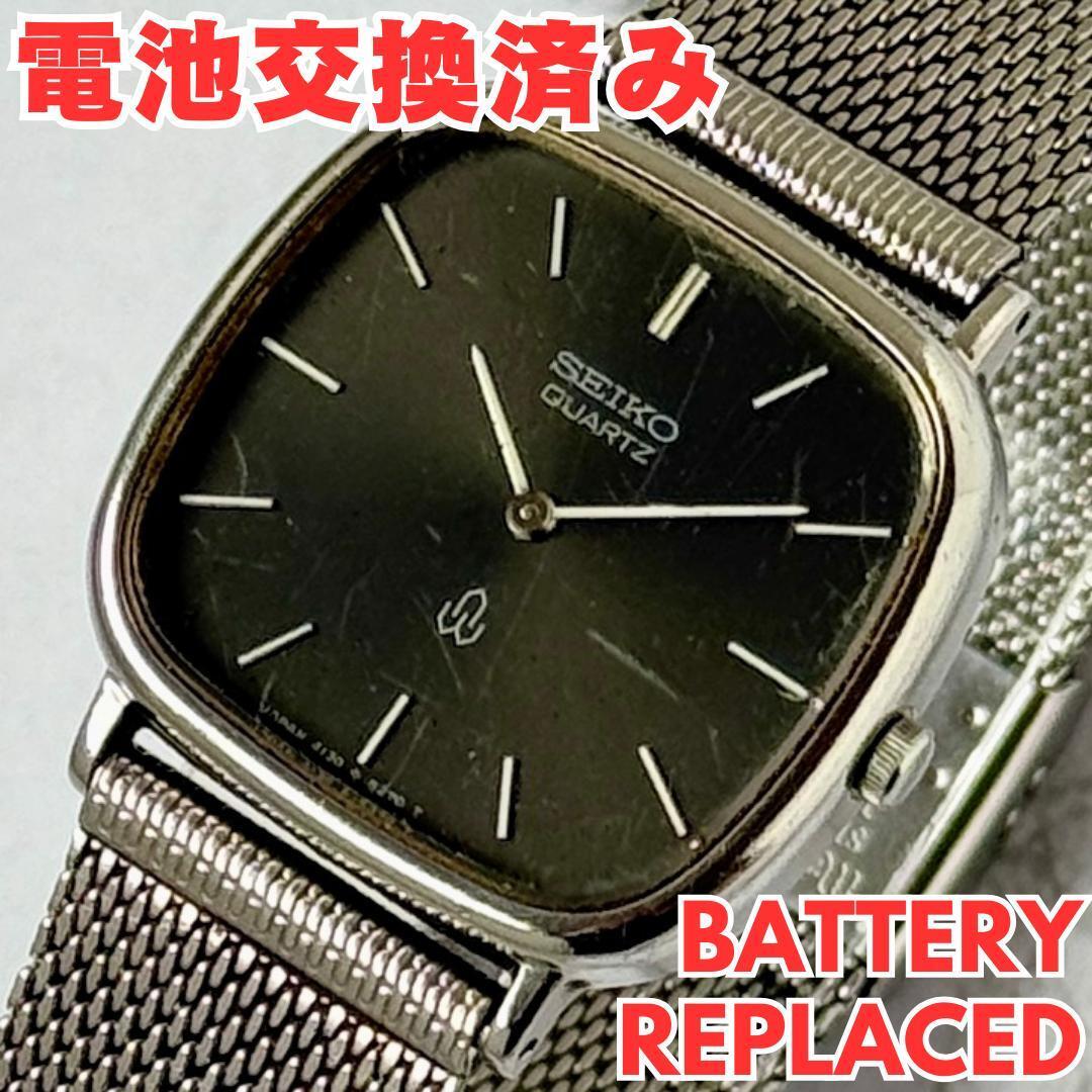 - 腕時計メンズ電池交換済みセイコーSEIKOクォーツ4131-5260黒ブラック文字盤ヴィンテージ紳士アナログ四角スクエアU2545