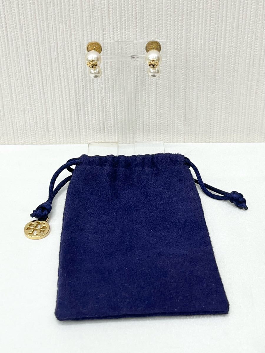 - TORY BURCH トリーバーチ パール / ロゴピアス 巾着付き 〇美 品