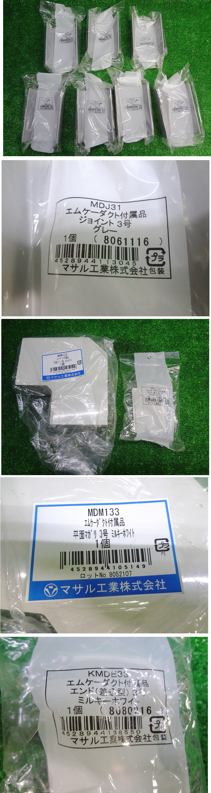 > Kのみ0490 未使用■マサル工業■エムケーダクト付属品セット■KMDE33 MDM133 MDJ31■エンド差込型3号 ジョイント3号 平面マガリ3号